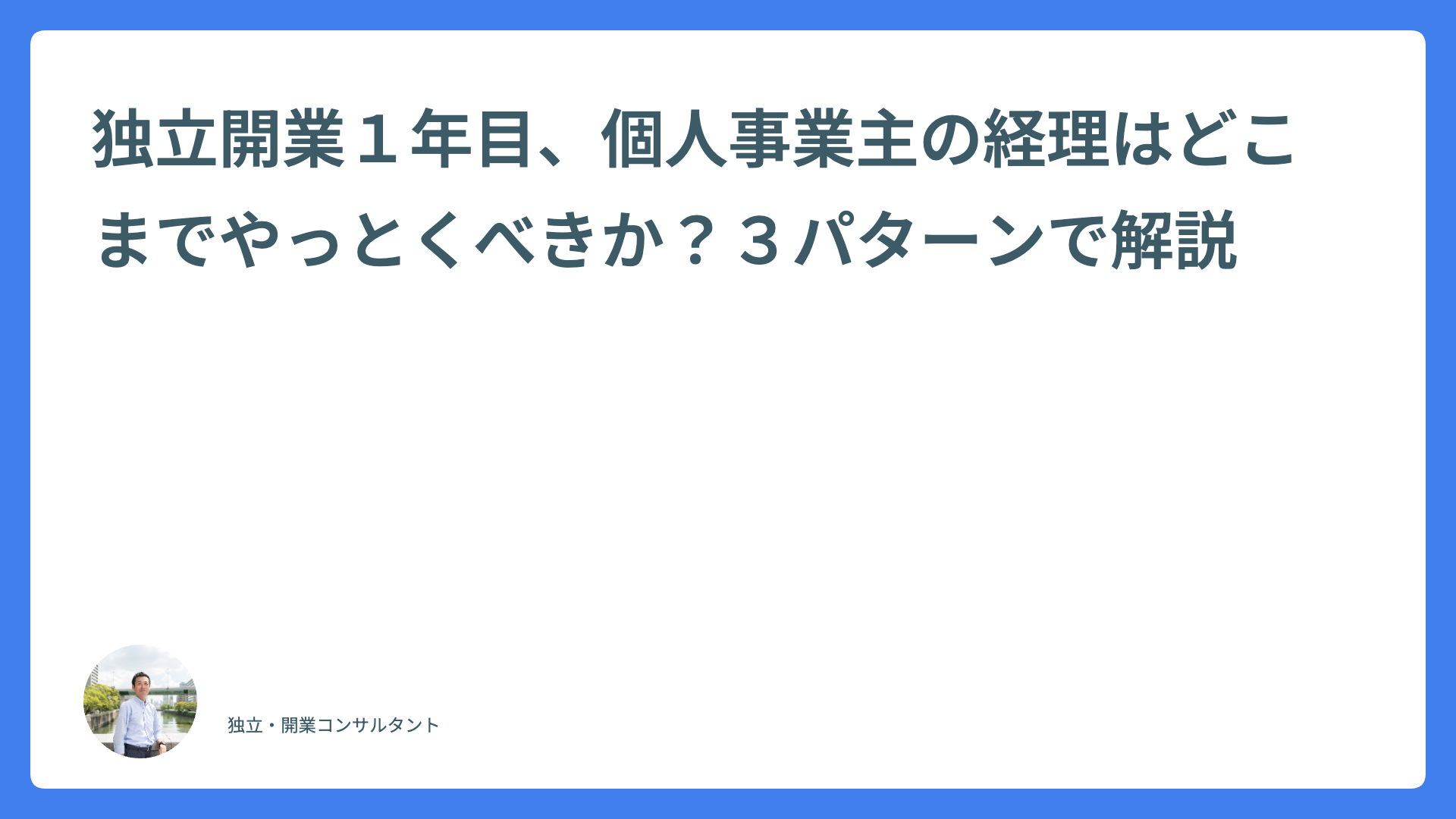 今日は、独立開業1年目の個人事業主がどこまで経理をやっておくべきかについてお伝えしました。
