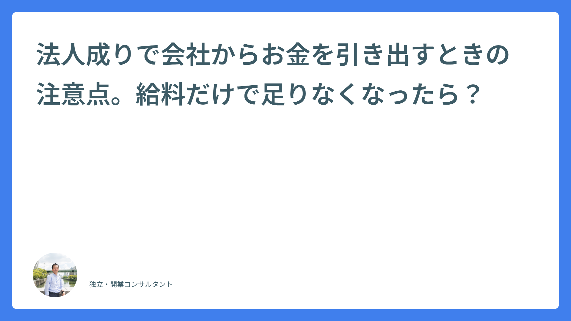 法人成りで会社からお金を引き出すときの注意点。給料だけで足りなくなったら?