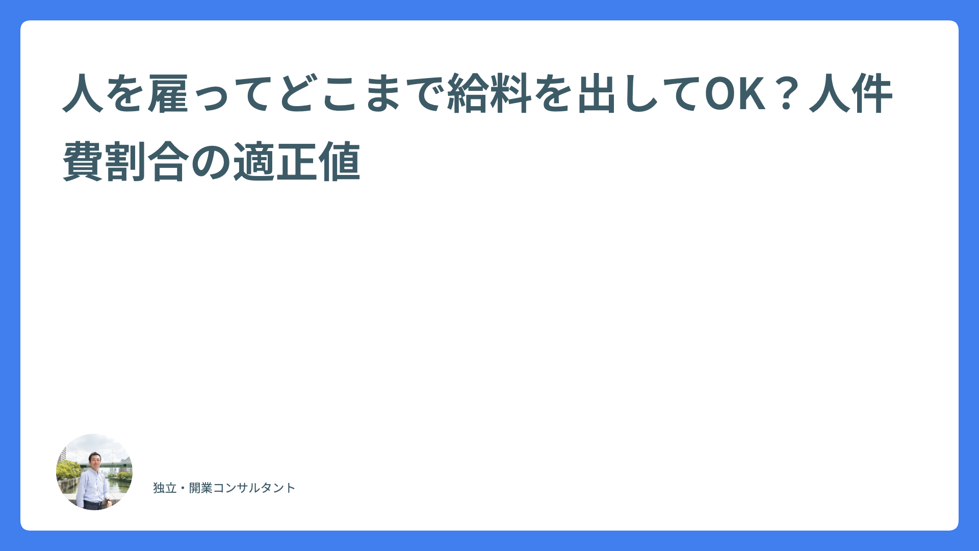 ですので、個人事業やひとり社長が人を雇うのであれば、人件費の割合は粗利の50%以下と考えておくのがいいでしょう。