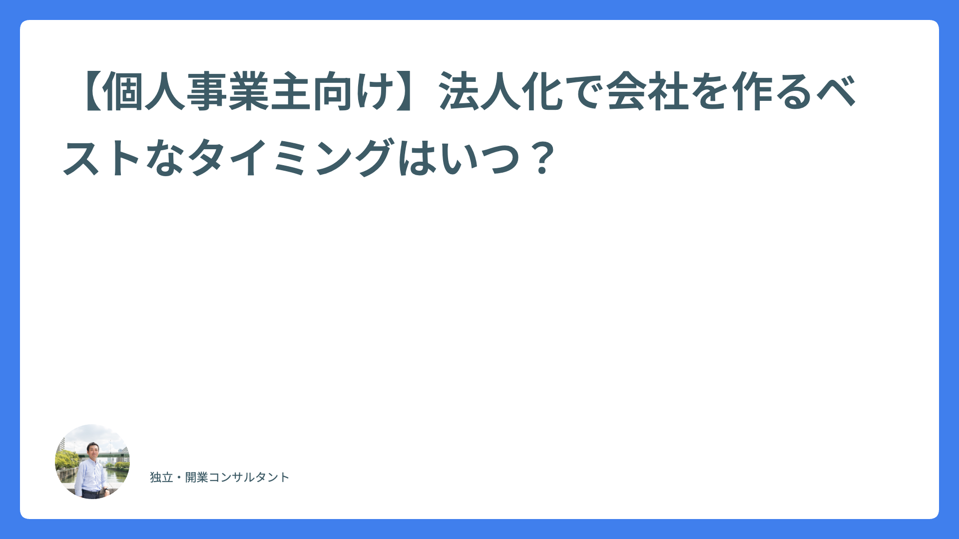 独立開業後、個人で事業を行っていて、そこから法人化する場合に、どのタイミングで会社をつくるのがベストなのか?